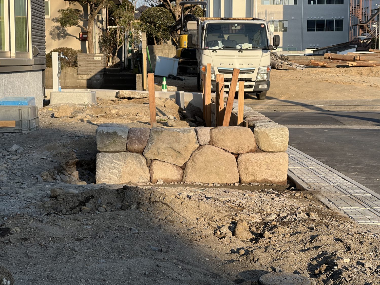 この現場では、新しく石を集めに行ったのもあり