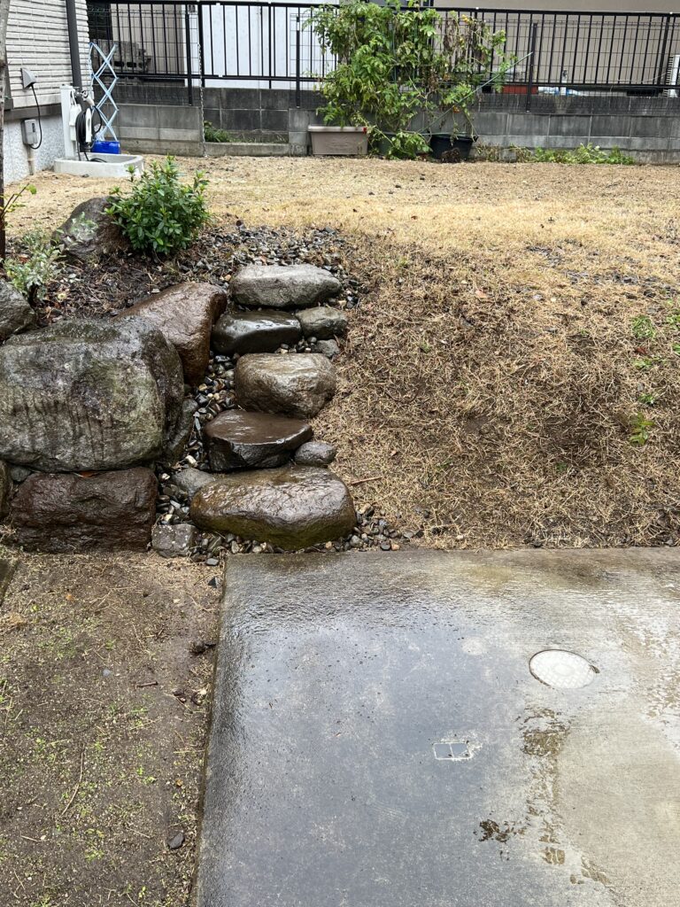 車がバックしてぶつからないようにと少し考えたり、お子さんがまだ小さいので石の段数を増やしてあげて